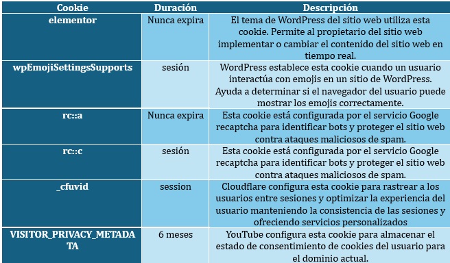 En este sitio, se usan los siguientes tipos de cookies: necesarias, funcionales y analíticas.