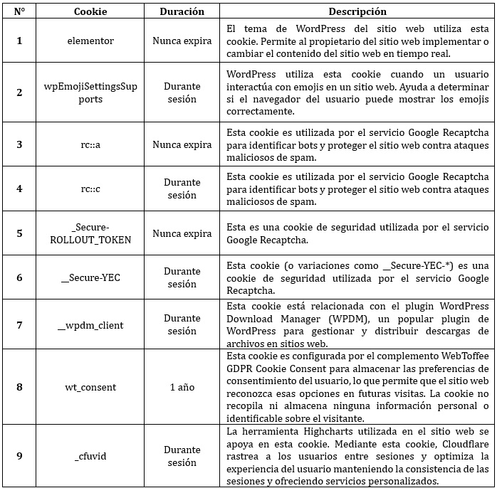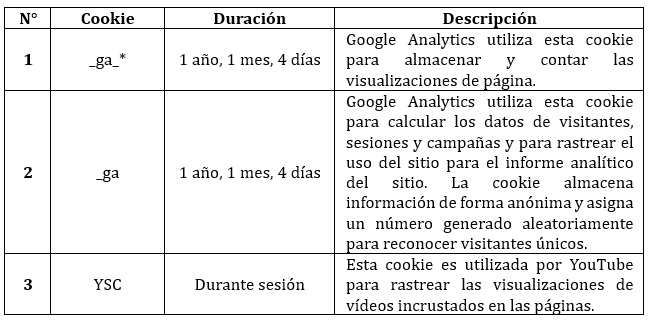 En este sitio, se usan los siguientes tipos de cookies: necesarias, de youtube y analíticas.