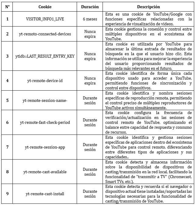 Esta categoría agrupa a todas las cookies que se activan cuando el sitio tiene videos de YouTube incrustados. Estas cookies son parte integral del ecosistema de YouTube y cumplen funciones diversas que van desde la funcionalidad básica del reproductor hasta características avanzadas de sincronización entre dispositivos.